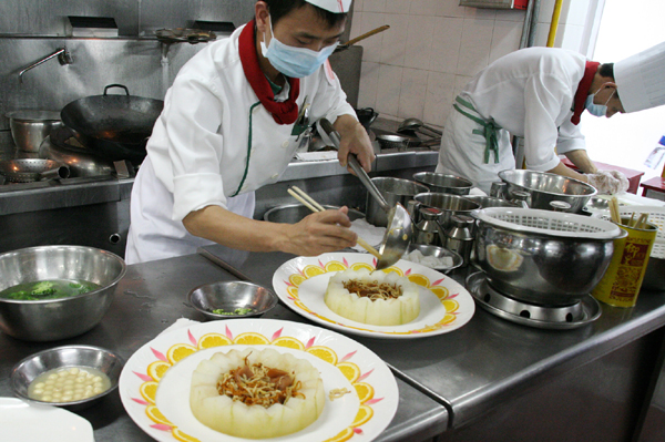 (2)运用自身的烹饪水平使菜品达到最佳烹制要求,严禁“马大哈”式的操作方式,那是不负责任的表现。严禁酒后上岗,这时人的神志不清醒,更不可能认真烹饪每道菜肴。