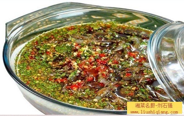 (3)把浸泡过白酒的毛蟹、河虾取出,放入醉汁中浸泡,其中河虾浸泡10小时,蟹子需浸泡48小时,出菜淋上少许醉汁和醉虾料即可。