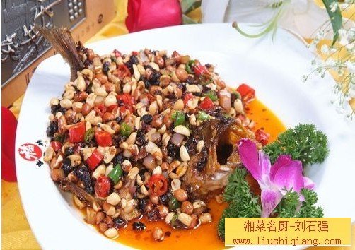 锅入宽油,六成热入鲈鱼炸成金黄色。锅上火,下杂粮和鲈鱼加少量高汤一起煨加调料调味即可。