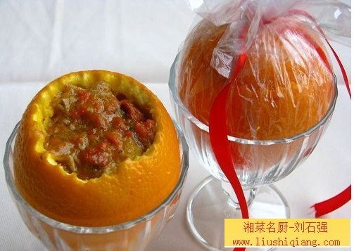 原料:甜橙10个(约1000克),湖蟹200克,白菊花(干)10克,玻璃纸10张。