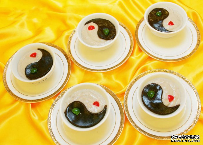 槟榔芋头煮熟后压成泥,红枣剥皮去核切碎分成两份,冬瓜糖切成米粒状.红枣碎末一份加白糖蒸5分钟取出.芋泥加白糖,熟猪油,清水搅至无小粒,蒸1小时,熟猪油倒在芋泥上,另一份红枣末及冬瓜糖米分别撒在芋泥的左右边.微火加热熟猪油,蒸过的红枣末下锅搅拌成糊状后浇在芋泥上,用瓜子仁,樱桃在芋泥上装饰成太极图案即可.太极芋泥 特色风味菜肴。更多特色湘菜美食就在刘石强湘菜厨师团队。
