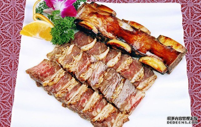 批量制作有窍门为了加快上菜速度,我们采用了批量处理的方法提前将牛小排蒸好、泡足,捞出牛小排,用真空袋包好,抽真空,放入2℃-5℃的冰箱内存放。客人点菜时,取出牛小排,去掉真空袋,放入烤盘内,刷上一层鲜辣油,撒上孜然粒,烤制即可。