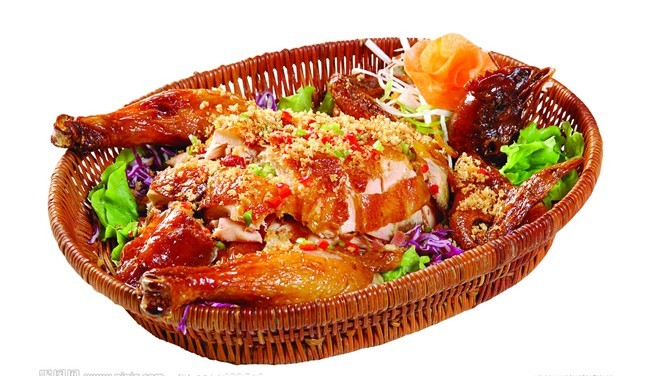 此菜是根据北京口味改良的一道菜品,不再直接挂糊,改为放入粉抓匀,脆皮粉选用三种粉,淀粉:面粉:粘米粉为1:1:0.2,加入面粉、淀粉使口感香脆,加入粘米粉使糊口感滑嫩。此菜也可以选择全鸡。放入烤箱烤制。