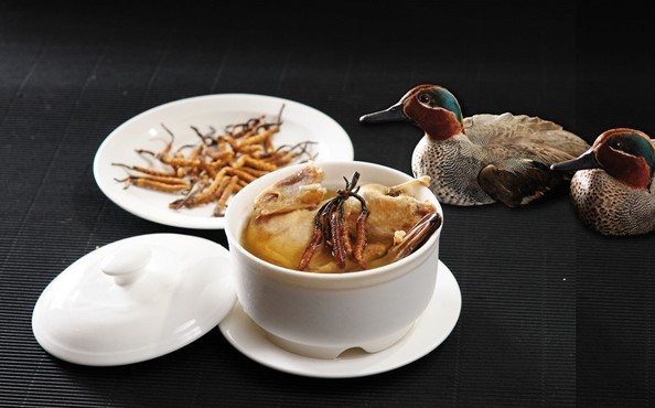 虫草全鸭滋阴清热、补肺肾、止咳、平喘、化痰。