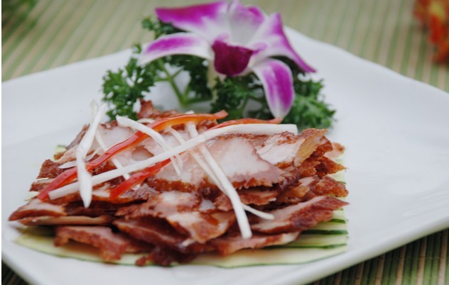 其他的原料上菜方法:牛霖肉、猪枚肉、猪直排的加工方法跟五花肉是完全相同的。如果是小仔鸡,那么一定要将其放入微波炉内,用高火加热5-6分钟,取出剁成大块,再按照原形摆放在烧热的铁板上,搭配辣椒酱一小碟一起上桌。