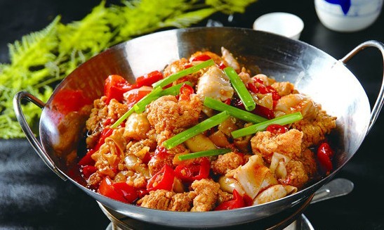 翻砂:即将菜品水分炒干、出香,又不糊底。更多特色湘菜美食就在刘石强湘菜名厨网。