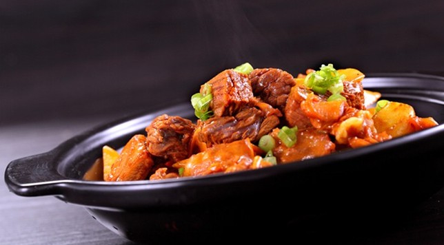 咖喱牛腩。浓浓的椰香味与咖喱味完美融合湘菜,先用咖喱汁浸泡牛腩肉,再用马来咖喱酱烧制,使牛腩肉香嫩酥软,一大锅可以3-4人食用,再搭配一碗泰国香米饭拌食,实在过瘾。更多特色湘菜美食就在刘石强湘菜名厨网。