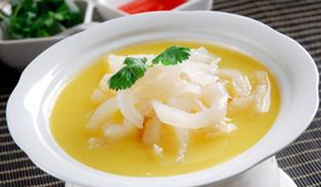 鱼肚烹调很多有酿制发如:虾胶酿鱼肚,浓汤烩鱼肚,烧等。