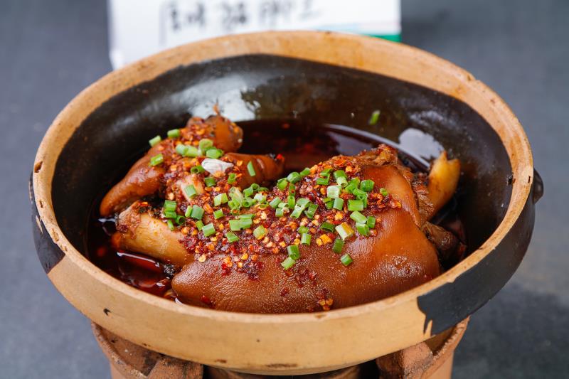 制作过程:先把净猪脚过水,去腥去血水,用酱油码成酱色,拿去蒸3小时,待用。干酸菜洗净,切碎,炒香入味待用。把猪脚放入炒好的干酸菜中,放入土砵中放盐、酱油、鸡精,再蒸1小时。出锅,上桌,放入油辣、葱花即可。更多特色湘菜原料及餐饮管理知识就在刘石强湘菜厨师网。