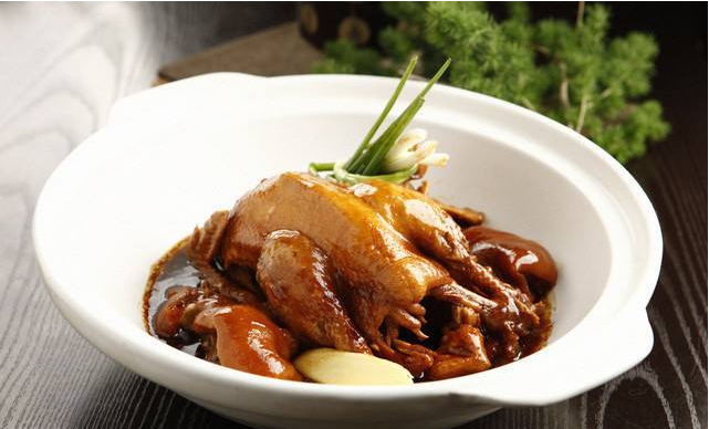 适合湘菜明档模式的菜品 创新猪手鸡 .刘石强湘菜厨师团队研发中心经过反复的调试才推出市场。三黄鸡抹完盐焗鸡粉后要将鸡挂起来晾2个小时,控出肉里水分,便于煲制时吸足酱汁。调酱汁时,要添入适量清水,不可多放,否则汤汁太多,会淹没三黄鸡,既不易收浓,鸡的颜色还会变黑。垫入猪蹄块,其胶质可为鸡肉增香,同时,还可以防止糊底。更多特色湘菜加盟美食及餐饮管理知识就在刘石强湘菜厨师网。
