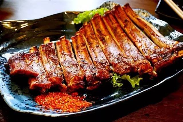 制作过程:肋排冲净血水,用毛巾吸干水分,在表面扎出数个小眼,放入盆中,加番茄汁1600克(番茄去皮,每500克加清水300克榨汁即成)、糖40克、盐30克、酱油20克、保宁醋15克、葱段、姜片各30克拌匀腌制一晚备用。 肋排沥干水分,放入垫有锡纸的托盘中。取腌汁50克放入小碗,加沙姜咖喱酱30克拌匀,在排骨两面反复刷上几次,盖上锡纸。 烤箱调至上下火180℃,放入肋排烤20分钟,期间每隔5分钟取出肋排刷一次酱汁,待肋排烤至表面金黄,取出斩成长条,分摆入两个长盘,每盘排骨带两小碗蔬菜沙拉上桌。更多特色湘菜加盟美食及餐饮管理知识就在刘石强湘菜厨师网。