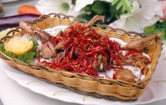 湘菜厨师网 刘石强湘菜厨师团队荣誉出品 香辣鳄鱼肠 湘菜近年来兴起的新原料,用地方口味制作,特色鲜明,成菜色泽美观,香辣味厚,回味悠长。 酱香浓郁,鳄鱼肠爽脆,色泽搭配...