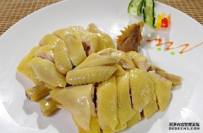 煮一锅沸水,把腌制过的鸡去除料头之后,用沸水烫鸡身,鸡内壳要充分浸入沸水里.提起鸡身流出鸡内壳水,重复以上动作三次.这样既可去除异味又可初步段生.浸鸡汤水重新加热,放入整鸡,鸡内壳一定要让汤水充分浸入,汤水要盖过整鸡为佳.大火重新煮沸后马上关火,盖上锅盖,焖至13-20分钟,视鸡身的大小或者新鲜鸡冷冻鸡来决定浸熟时间.拿出整鸡,放在盘里用黄酒跟原汤水淋上鸡身,之后均匀涂上香油,放凉待斩件。鲜美的白切鸡就完成了,当然七分鸡味,三分酱味,你可以选用不同的酱料沾酱.嫩滑的白切鸡的最高境介就是,骨中带血,鸡肉鲜嫩.因为鸡肉的蛋白质的特殊性,过熟的鸡肉会"鞋".但是现在又有XX病毒,唉烦