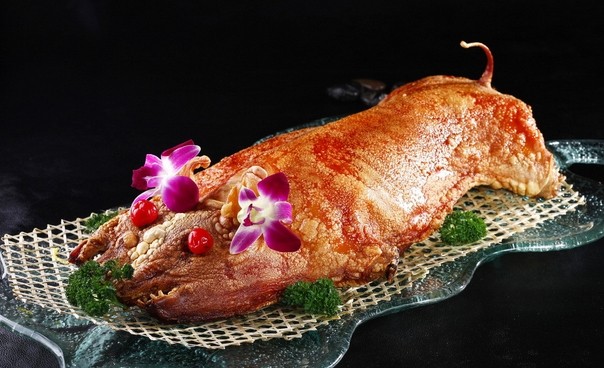 “烤乳猪”是广州最著名的特色菜。早在西周时此菜已被列为“八珍”之一,那时称为“炮豚”。关于烤乳猪,还有一个有趣的传说。很久很久以前,有一天,一户人家院子里突然起了火,火势凶猛,必必剥剥,很快就烈焰冲天,把院子里的东西都烧光了。这时宅院的主人匆匆赶回家,只见一片废墟,惊得目瞪口呆。忽然一阵香味扑鼻而来。主人循着香味找去,发现原来是从一只烧焦的小猪身上发出来的。主人看那小猪另一面,皮烤得红朴朴的。他尝了又尝,味道很好。院子烧掉了,他很伤心,但却为发明了吃猪肉的新方法而欣慰。这个传说,源于18世纪英国大学者查理·兰姆《谈谈烧猪》一文。更多