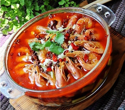 制作过程。北极虾解冻以后,用剪刀减去虾须虾枪和虾足,沥干水分;金针菇去根部洗净沥干水、黄豆芽去根须洗净沥干水待用。炒锅内倒入50克品利特级初榨橄榄油,放入干辣椒段和花椒用中火炸至呈棕红色,捞出待用(品利特级初榨橄榄油有很高的热稳定性,高温下不会产生有害物质,所以重复使用3-4次也大可放心)。放入郫县豆瓣炒香,直到炒出红油。加入姜末和一半的蒜末一起炒。加入肉汤,烧沸,加入料酒、酱油、糖、盐、红油调味。将金针菇和黄豆芽放入烫熟捞出铺在大碗底部。放入北极虾,关火,用余温浸泡2分钟,连汤和虾一起倒入大碗中将事先炸好的干辣椒和花椒剁碎,撒在北极虾上,蒜末也均匀撒在北极虾上。锅洗净擦干,放入50克品利特级初榨橄榄油,烧至9成热(冒烟),然后将热油均匀浇在北极虾上,最后放上香菜装饰即可。更多特色湘菜就在刘石强湘菜名厨网。