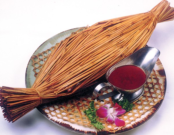 调料:椒盐50克,汾酒50克,色拉油2000克,海鲜酱、甜面酱各10克,味精3克,洗净晾干的稻草3000克。