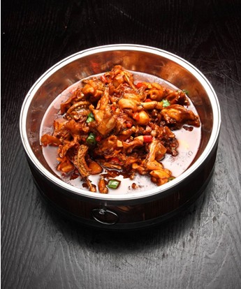 香辣跳水蛙 此菜为现在比效流行的一道菜品.所谓跳水,顾名思义“扑嗵”一声,突出的是一个“嫩”字。蛙跳进的是滚烫的红油锅,跟那些仔姜花椒辣椒一起,跳出一身的嫩气。跳水姿势好,就能让雪白的肉轻轻一碰就离骨滑在嘴里,嫩得微微有些胶质,感觉不到肉的纤维。就这样嫩,还能入味,麻辣自不在话下。口味香辣、鲜嫩。此菜为现在比效流行的一道菜品,深受食客欢迎。更多特色湘菜美食就在刘石强湘菜厨师网。