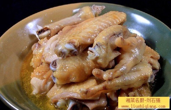这道菜是我将广东豉油鸡、盐火局鸡、川式卤水鸡三者结合制成的,两煮两浸,走菜前微波加热,肉质嫩、香味浓。