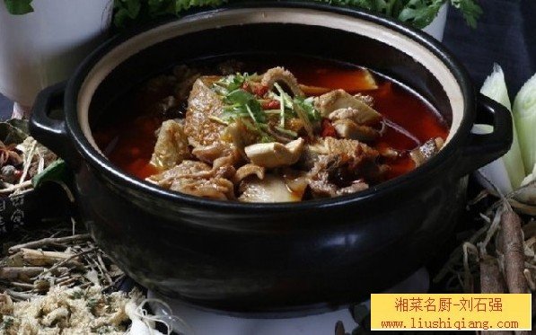 香辣牛肚在湘菜中非常多见。我们在烹调时,增加了用鸡汤煨制的白萝卜,它不仅可以丰富菜肴的营养,缓解菜肴的油腻感,还可以提升牛肚的鲜香味。
