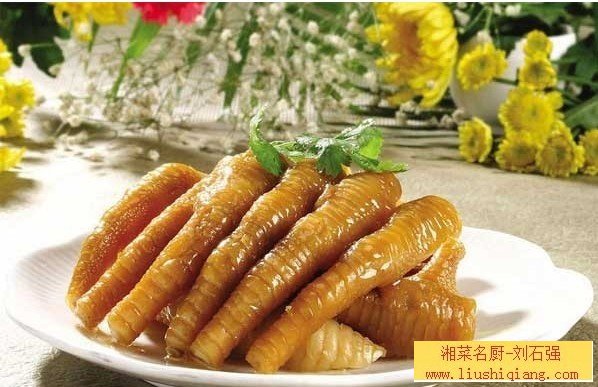 (5)将炸好的凤爪放入潮州卤水中浸卤30分钟,捞起即可上碟。