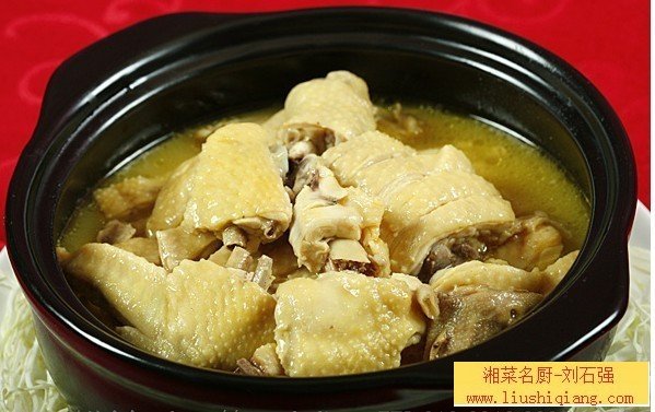 原料:散养鸡300克,鲜姜200克,蒜籽100克。