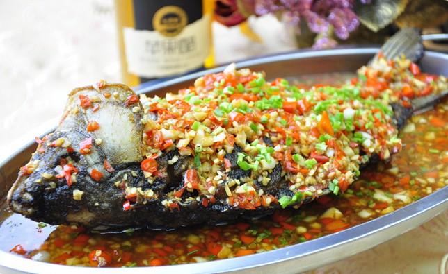 制作过程: 先将鲫鱼宰洗干净,郁金、山楂、当归、三枝洗净浸透,红椒切丝,生姜切片,葱切丝。 锅内加入少量清水,放入郁金、山楂、当归、三枝用慢火煎20分钟,取汁待用。 ③烧锅下油,放入姜片、鲫鱼煎至金黄色,攒入酒,加入中药汁煮片刻,调入精盐、味精,上碟撒入葱丝、红椒丝即成。更多特色湘菜美食就在刘石强湘菜名厨网。
