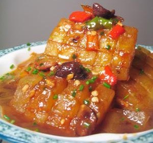 展现出更为清新的农家滋味美食 冬瓜。冬瓜是再普通不过的食材了,加入了小米剁辣椒、蒸鱼豉油和熟猪油烹炒后,调料的风味被冬瓜肉吸收,展现出更为清新的滋味。更多特色湘菜美食就在刘石强湘菜厨师网。