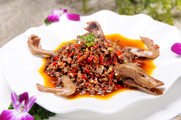 口味酸爽很特别的 新派血鸭。以前我们做血鸭都会选择仔鸭,用仔鸭不需要提前预制,点单直接烹饪就可以,口味香辣鲜嫩,非常受欢迎。但原料很多地方不好找,我们这道醋血鸭适合在有些地方原料不方便采购,我们选择了老一点的鸭子,烹调时,我们加入了腐乳、酸姜、酸泡椒、酸藠头、醋血等调料调味食材搭配,成菜酸辣软糯口味很特别,乡土气息也很浓厚,适合嗜辣省份的厨师来借鉴。,别看菜肴看上去黑黑的,味道却非常棒。更多特色湘菜原料及餐饮管理知识就在刘石强湘菜厨师网 。
