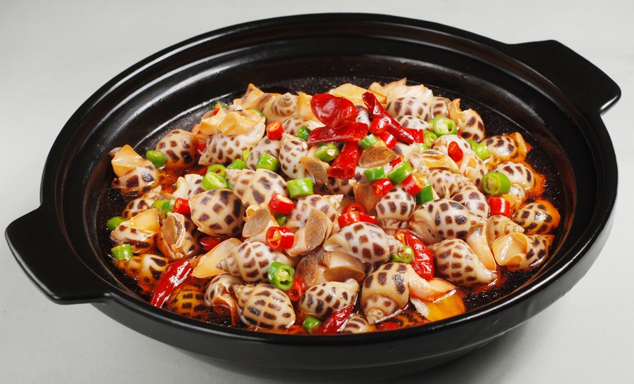 一款经典海鲜湘菜 辣酒煮花螺,这款菜是我们刘石强湘菜厨师团队推出的一款经典海鲜湘菜,一直销量很好,这些年我们也在做改良调整,对花螺的新鲜度要求越来越高。也许几年前花螺采购回来需要养几天去泥沙,但现在我们的花螺在经过基地养殖后,运输到厨房可以直接下锅煮制上桌,做出来的花螺肉更加鲜美。沸水不能过大,要小火煮制,否则肉质容易变老。更多特色湘菜加盟美食及餐饮管理知识就在刘石强湘菜厨师网。