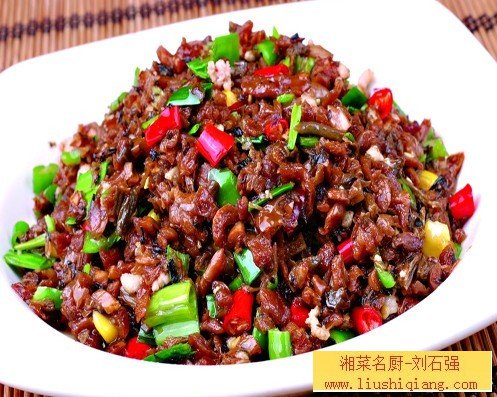 推荐菜式:外婆菜炒肉 推荐菜式 外婆菜配杂粮包 湘菜厨师网 湘菜厨师刘石强厨房管理团队荣誉出品