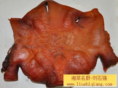 注:1、腊猪脸一般较干硬,先入锅蒸软就好切了,还能够蒸出多余的油。