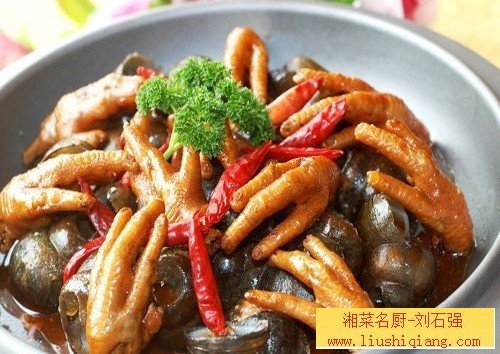 原料:田螺500克,鸡爪10只,肉末120克。