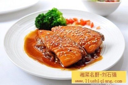 (3)法汁加法香末、黄芥末熬匀,出锅浇在三文鱼上上桌即可。