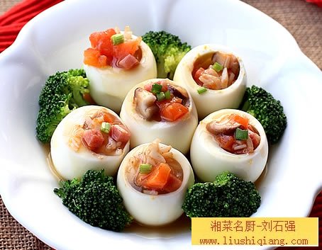10、将炒好和杂丁装入鸡蛋盅