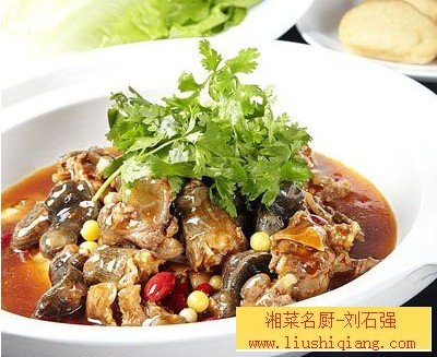 黄豆烧乌龟 以龟为原料的特色湘菜。甲鱼和龟是湘菜厨师擅长烹制的菜品,做法稍有改变菜的风味就会发生变化,所以在制作龟肉菜品时,对原料的性质要多加了解。