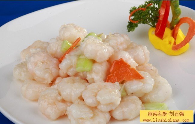 卖点:此菜是通过对食材进行改良处理烹饪而成的小炒菜品。用糯米水浸泡虾仁,不仅祛除了虾仁的腥味,而且改善了虾仁的色泽与口感。虾仁不需用碱水腌制,更健康。更多湘菜美食就在刘石强湘菜厨师网