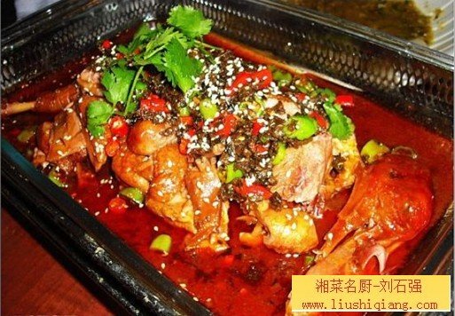 炭火馋嘴鸭。刘石强湘菜厨师团队在全国多家餐厅试推,最后总结此菜在四川,贵州,湖南,湖北等城市推出效果最好。