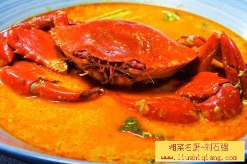 泰国咖喱风味菜肴 咖喱蟹。刘石强湘菜厨师团队借鉴泰国菜的精华做出真道菜这几年在中国非常流行,其中的咖喱风味菜品,更是大受欢迎。调制咖喱的方法有很多,咖喱菜能不能走俏,也在于咖喱的调制,下面我们就来介绍一道适合于我们中国人的咖喱风味,当然也秘制的方法,你看到了这就是的秘方。