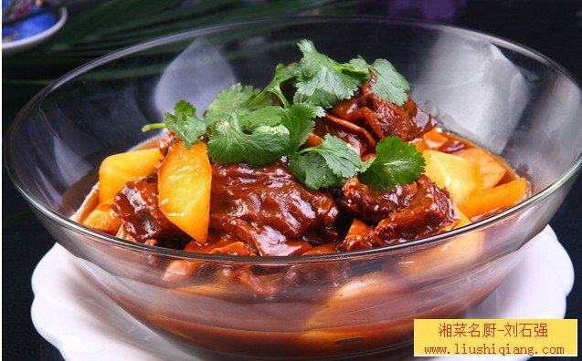 主料:牛腩400克。更多特色美食就在刘石强湘菜厨师网