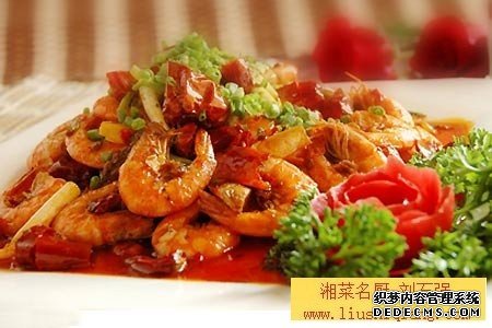 关键点:高汤的用量可以少一些,因为汤汁太多,就会影响到虾的酥脆感。炸虾是个关键,一般油温控制在120℃最为合适。油温太低,虾壳膨胀不起来,或者膨胀不充分;油温太高,虾壳与虾肉立即分离,影响成菜效果。虾的浸炸时间要短,一定要用大火,只要看到虾壳膨胀,应立即捞出,否则虾壳容易胀破。更多特色湘菜美食就在刘石强湘菜厨师团队