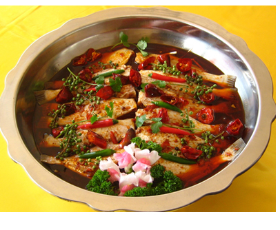 2、锅入底油烧至五成热,下入姜片、葱节各10克、干青花椒20克爆香,放入郫县豆瓣10克、自制剁椒25克、野山椒碎8克小火炒出红油,放入高汤300克烧开,加耗儿鱼,调入盐4克、味精、鸡精3克、白胡椒粉2克、五香粉5克小火烧4分钟,放入黄瓜条150克、木耳30克继续小火烧2分钟,勾薄芡,淋花椒油10克,起锅装吊锅撒香菜碎10克、白芝麻5克即可上桌。点火即可食用。不一般的制作。不一样的味道。更多特色湘菜美食就在刘石强湘菜名厨网。