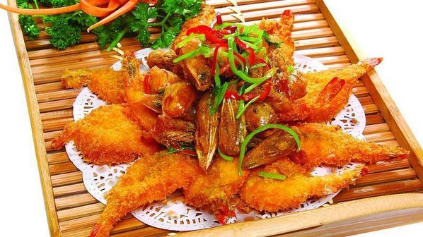 酸甜香辣味浓郁的荔枝汁烹饪出来的美食 手剥虾。这道菜的做法有点类似于川菜的荔枝虾仁,但是调料选择更丰富,所以菜肴口味也更好。在北方,现在流行一道菜叫“金瓜虾仁”,金瓜制成菱形块,挂上脆皮糊油炸,虾仁也是挂糊油炸,炸好的两种原料在外形上是一模一样的,这道菜也可以降低明虾的用量,同时加入金瓜,这样菜肴的成本和售价都会大幅下降。另外,菜品制作可以根据需要进行创新:一是在制作荔枝汁时可以增加200克苹果醋,苹果醋可以中和甜味,不会让客人吃完菜肴后产生甜腻的感觉;二是把脆皮糊里的油菜丝换成绿茶叶或者薄荷丝。 酸甜香辣味浓郁的自制荔枝汁是我们制作这道虾仁的秘密武器,成品外酥里嫩,卖相也不错。更多特色湘菜美食就在刘石强湘菜名厨网。