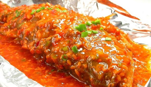 流行于珠江三角洲特色融合湘菜 芒果酱烧鲈鱼。此菜虽然算不上是高档,但口味的酸甜、鱼肉的细嫩、芒果的清香,却使它成了女士和儿童的最爱,再加上铁板带来的热闹气氛,更使得这道菜成了本店的一个亮点。另外,这道菜售价虽然不高,但利润却相当可观,基本保持在50%以上,所以值得你尝试一下。更多特色湘菜美食就在刘石强湘菜厨师网。