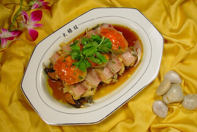 腊肉蒸螃蟹 时尚创新新口味湘菜。海鲜嫁接湘菜,螃蟹吸收腊肉蒸出的油变得更香,腊肉染上螃蟹的鲜味,既显档次又好吃。更多特色湘菜美食就在刘石强湘菜厨师网。