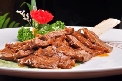 让味蕾感受到前所未有的新奇滋味 荷香牛肋 .牛肋骨又称带骨牛小排,是牛身上最精华的部分之一,上乘的牛肋骨来自第三至第七节肋骨,西餐的做法是将牛肉连带骨头一起炖、烤、烩。大厨别出心裁地西菜中做,采用卤水的方法事先将牛肋骨卤制入味,接着切块放在荷叶上蒸,最后淋上西餐特色的黑椒汁,造就了中西合璧的鲜香菜式。入口,牛肉带着荷叶的清香,卤水香料的馨香,黑胡椒汁的辛香,口感细嫩多汁,多重的香气诱惑,让味蕾感受到前所未有的新奇滋味。更多