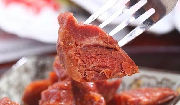 制作:1、取驴的后腿肉片成薄片,汆熟捞出。后腿肉比较瘦,劲道嫩滑、容易制熟,鲜味突出、膻味较小。