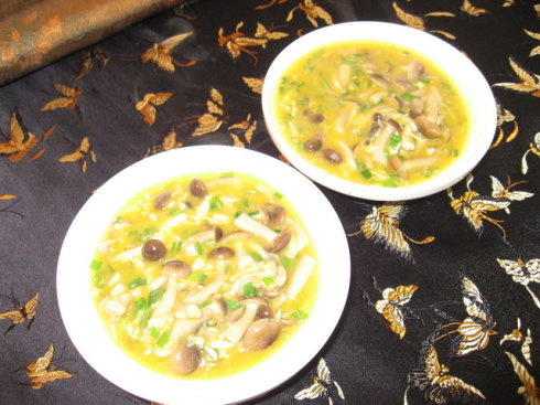 制作过程1、蟹味菇汆水洗净,加浓汤小火煨15分钟。