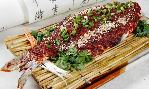新派融合湘菜 稻香黄鱼。稻香味浓,鱼肉鲜嫩、微辣可将自制酱刷在蒸制前的鱼肉上,作为腌料腌制入味,这样成菜形整。