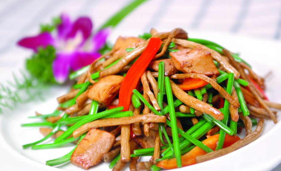 原料:新鲜的茶树菇100克,鹅肝酱50克。香芹20克,椒盐味美国大杏仁50克。
