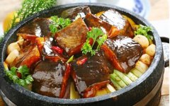 一道很“土”的混搭湘菜 酱板鸭烧岩蛙